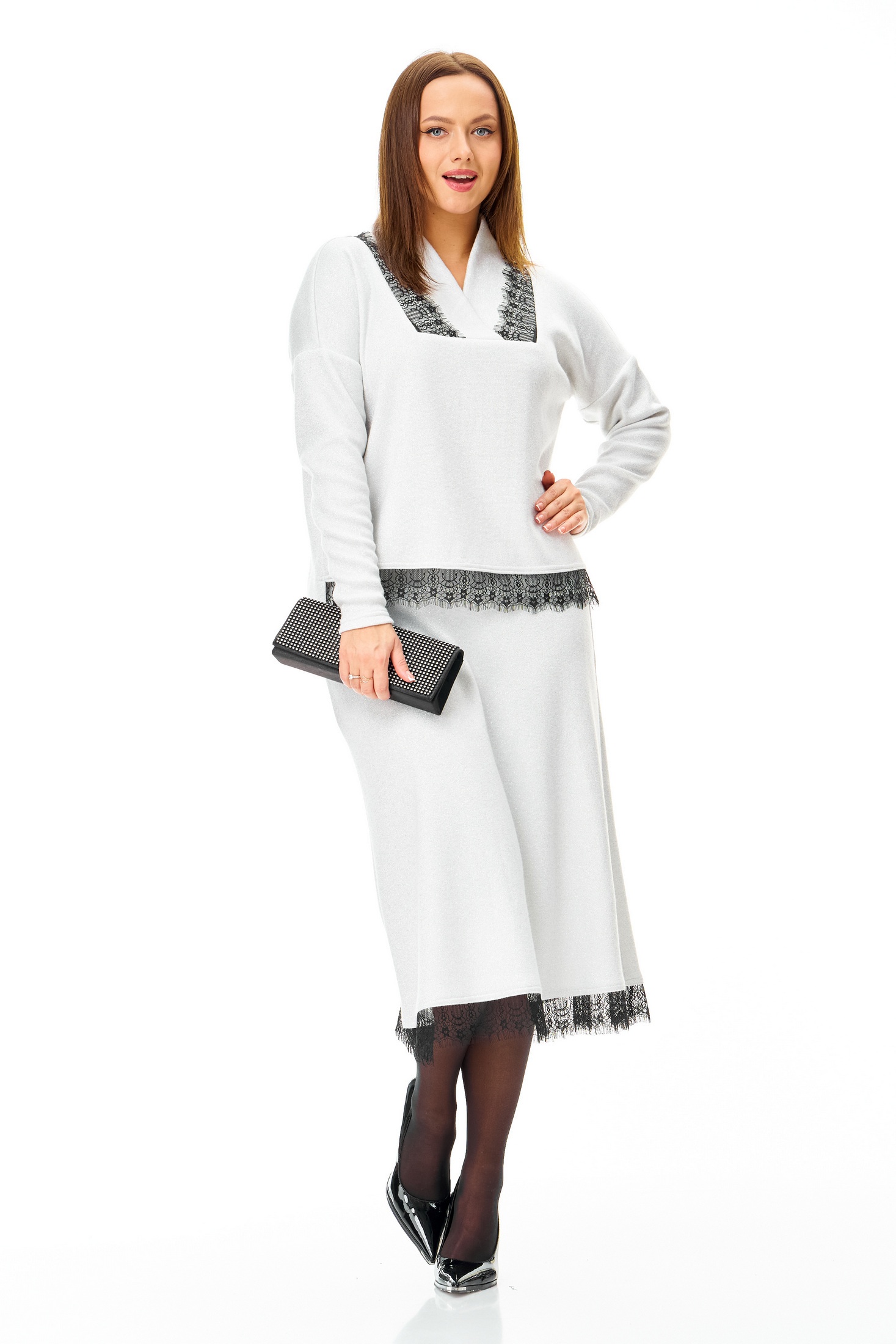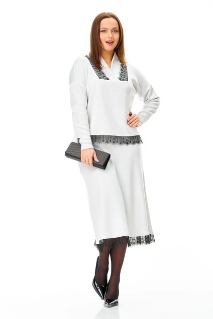 Нарядный комплект из мягкого трикотажного полотна в сочетании с контрастным кружевом..