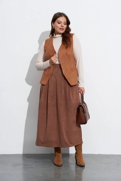 Костюм с юбкой 5623 бежевая замша TEZA