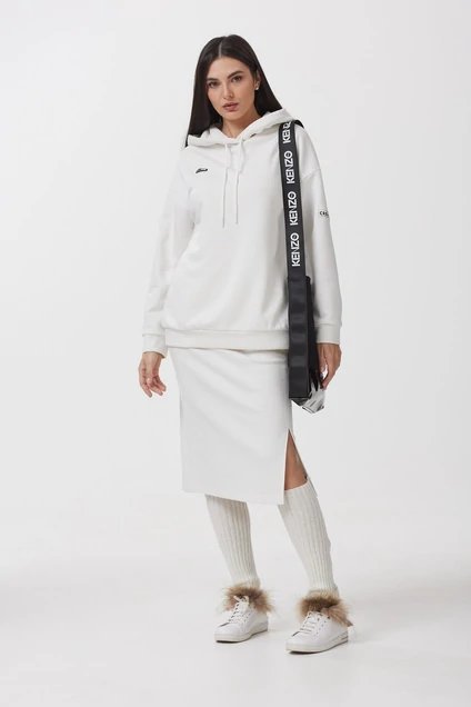 Костюм 2-предметный в стиле "спорт-шик" состоит из юбки и удлиненного худи с капюшоном.