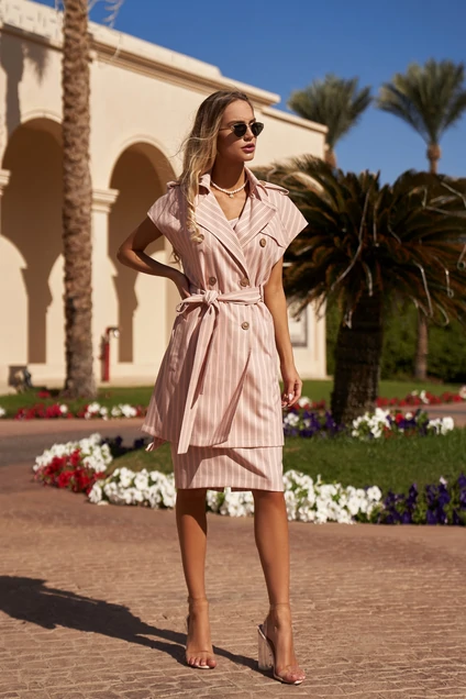 Топ на узких нерегулируемых бретелях, выполнен из креп-шифона, бретели декорированы кружевом.Юбка выполнена из костюмной ткани, на подкладке. Застёжка на потайную тесьму-молнию в левом боковом шве. По верхнему срезу пояс 3,5 см. с застёжкой на петлю и пуговицу. Сзади по нижнему срезу шлица 18 см.  Длина 86 см.