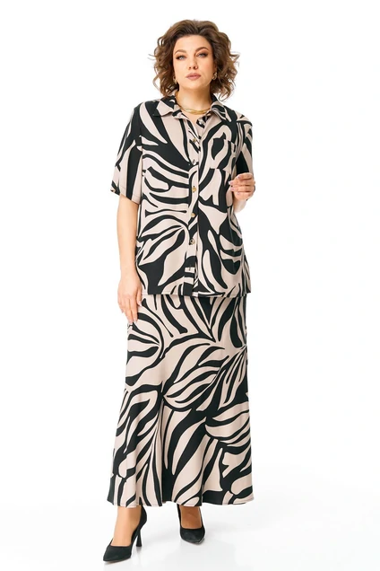 Костюм с юбкой 1169 черно-бежевый VI ORO