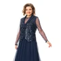 Костюм женский состоит из жакета и юбки. Жакет свободного силуэта с естественной линией плеча.Перед с отрезной планкой и центральной бортовой застежкой на золотые кнопки.По спинке выполнены кокетка и рельефы.По переду имеются накладные карманы авторской формы с клапанами.В боковых швах карманы.Воротник отложной.Рукав длинный с защипами по низу и патой.Низ рукава обработан притачной манжетой с застежкой на золотую кнопку.Низ жакета обработан притачным поясом с резинкой по спинке и некоторой части переда.Юбка миди зауженная к низу с разрезом спереди.Застежка на переднем полотнище на молнию и пуговицу.В боковых швах карманы с отрезным бочком.Заднее полотнище со средним швом.Пояс притачной с резинкой в боковых швах.Отделочные строчки контрастного цвета.Вся фурнитура металлическая premium качества.