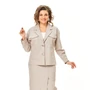 Костюм женский состоит из жакета и юбки. Жакет прямого свободного покроя со спущенной линией плеча.Застежка однобортная на авторские металлические пуговицы сложной формы.Воротник отложной пиджачного типа.Рукав длинный со складками и манжетой, застежка на петлю-пуговицу.По переду обработаны нагрудные карманы с клапаном.Спинка со средним швом.Юбка прямого силуэта, длина миди.В среднем шве заднего полотнища обработана застежка на потайную тесьму-молнию.Перед состоит из двух разноуровневых частей типа "на запах" с металлической молнией.Пояс притачной с резинкой в боковых швах.Отделочные строчки контрастного цвета.Вся фурнитура металлическая premium качества.