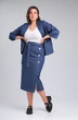 Комплект женский жакет +юбка +пояс. Комплект из ткани джинс, свободного силуэта. Жакет: застежка на петли пуговицы , лацкан ассиметричной формы, рукав 3/4, спущенный по низу рукава манжет, карман прорезной с клапаном. Юбка: пуговицы по переду юбки отделочные (не расстегиваются), по задней половине юбки молния, верх юбки с поясом в пояс вставлена резинка по боковым швам.