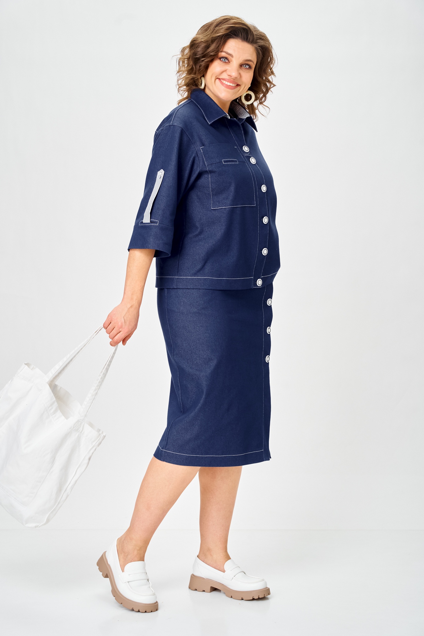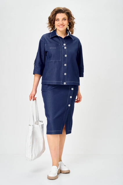 Костюм с юбкой 1152 джинс Vilena — это стильный выбор для офиса и повседневных прогулок. Коллекция бренда Vilena предлагает удобство и модный дизайн. Изготовленный из смеси хлопка, полиэстера и эластана, костюм обеспечивает комфорт и легкость движений. Жакет прямого силуэта с кокеткой и потайными карманами придает образу строгости. Оригинальная застежка с пуговицами и рукав ¾ создают стильный акцент. Юбка с притачным поясом и асимметричным передом подходит для делового стиля. Темно-синий цвет добавляет элегантности, а материал делает костюм идеальным для межсезонья. Отличный вариант для тех, кто ценит комфорт и современный шик в одежде.