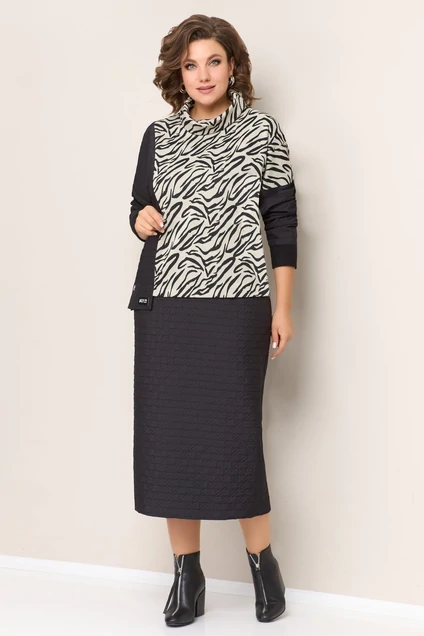 Костюм с юбкой 1322 черно-бежевый VOLNA