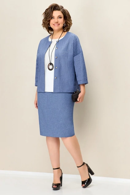 Костюм с юбкой 1348 голубой джинс VOLNA