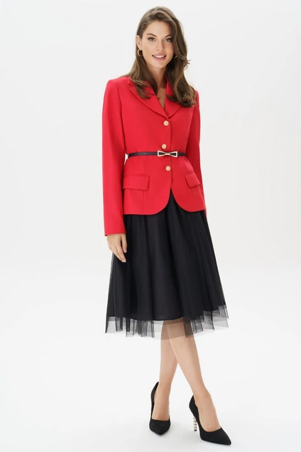 Элегантный костюм, состоящий из красного жакета полуприлегающего силуэта и пышной фатиновой юбки, станет идеальным выбором для создания яркого и запоминающегося образа. Жакет подчеркивает талию и выполнен из качественного материала, который обеспечивает комфорт и долговечность. Фатиновая юбка добавляет образу романтичности и легкости, делая его воздушным и нежным. Вместе эти элементы костюма создают гармоничный ансамбль, который подходит для различных мероприятий - от праздничных вечеринок до деловых встреч.