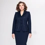 Жакет полуприлегающего силуэта. Рукав втачной. По спинке средний шов, рельефы. Застежка на пуговицах. Спереди на подкладке. Отделка атласной тесьмой и стразами. Юбка прямого силуэта на подкладке. В поясе, по бокам от вытачки до вытачки с эластичной лентой. На заднем полотнище юбки средний шов со шлицей и застежкой на пуговицу и