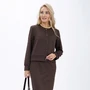 Жакет прямого силуэта, с застёжкой встык с завязками. Перед с нагрудными выточками. Спинка со средним швом. Рукава втачные, двухшовные. Срезы обработаны окантовочным швом.