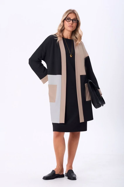 Комплект создан для тех, кто ценит комфорт и элегантность в каждой детали. В комплект входит платье прямного силуэта и кардиган. Ткань не мнется. Благодаря своему крою костюм подойдёт для разных типов фигуры. Он подчеркнёт вашу индивидуальность и станет отличным дополнением к вашему гардеробу. Этот комплект — не просто одежда, это заявление о вашем стиле и вкусе. В нём вы будете чувствовать себя уверенно и комфортно, зная, что выглядите на все сто. Выбирая этот костюм, вы выбираете качество, комфорт и стиль. Классическое черное платье прямого силуэта, со спущенным плечом. Такое платье незаменимая вещь в любом гардеробе. Кардиган прямого силуэта с накладными карманами и спущенным плечом - лекго станет дополнением к любому образую. Длина платья по спинке (50-54) - 100 см, (56-60) - 104 см. Длина рукава: (50-60) - 26 см. Длина кардигана по спинке: (50-54) - 90 см, (56-60) - 93 см. Длина рукава (с манжетой): (50-60)-45см