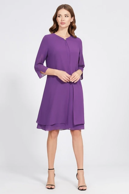 Почувствуйте себя непринуждённо шикарно в этом многослойном комплекте, состоящем из платья и съёмной развивающейся накидки в тон. Модель выполнили из мягкого струящегося, однотонного шифона и 100 % вискозной ткани. Платье А- образного силуэта с округлой формой горловины, короткими втачными, полупрозрачными рукавами и застёжкой на потайную тесьму-молнию в среднем шве спинки. Накидка соответствующего силуэта, с привлекательным фигурным вырезом горловины, втачными полупрозрачными рукавами с разрезами в верхнем шве и застёжкой на декоративный крючок со стразами. Это идеальный вариант для вашего особенного мероприятия.