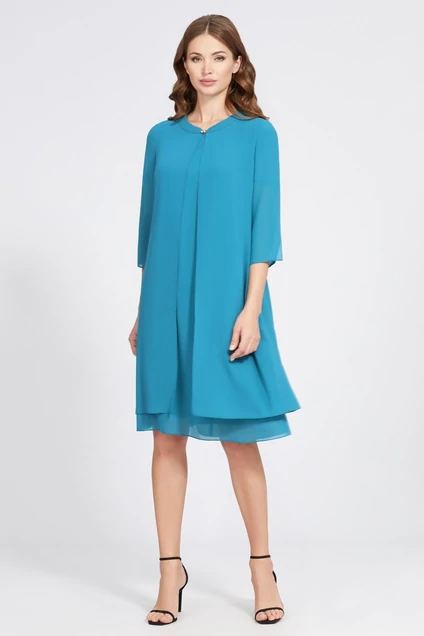 Почувствуйте себя непринуждённо шикарно в этом многослойном комплекте, состоящем из платья и съёмной развивающейся накидки в тон. Модель выполнили из мягкого струящегося, однотонного шифона и 100 % вискозной ткани. Платье А- образного силуэта с округлой формой горловины, короткими втачными, полупрозрачными рукавами и застёжкой на потайную тесьму-молнию в среднем шве спинки. Накидка соответствующего силуэта, с привлекательным фигурным вырезом горловины, втачными полупрозрачными рукавами с разрезами в верхнем шве и застёжкой на декоративный крючок со стразами. Это идеальный вариант для вашего особенного мероприятия.