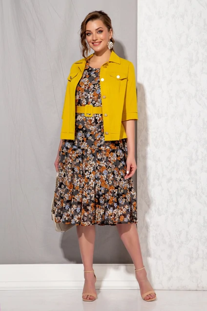 В комплекте с жакетом предлагается шифоновое, романтическое платье.