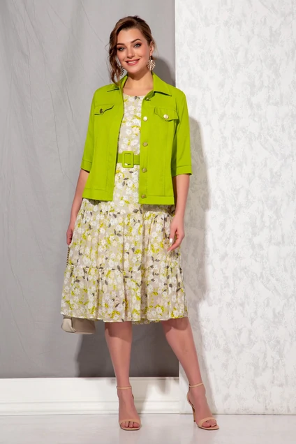 В комплекте с жакетом предлагается шифоновое, романтическое платье.