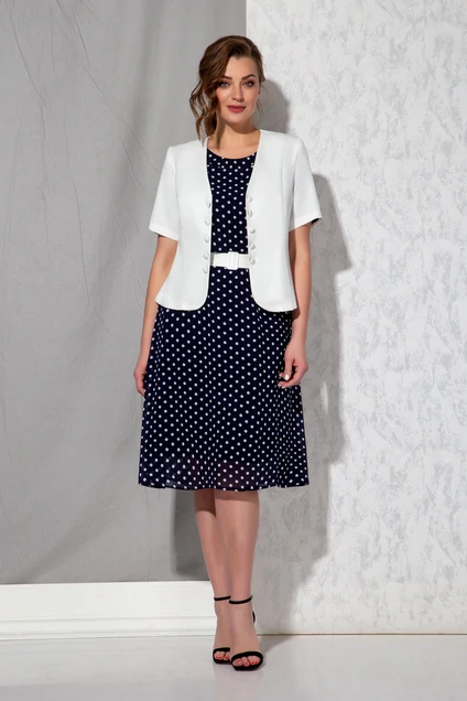 Костюм с платьем 5051 белый + горох Beautiful&Free