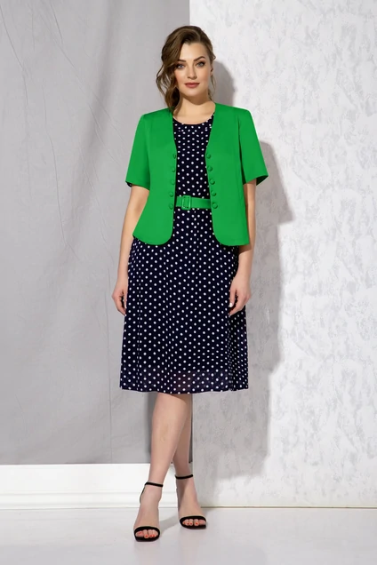 Костюм с платьем 5051 зелёный + горох Beautiful&Free