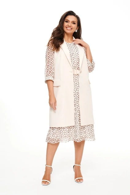 Костюм с платьем 6024 бежевый + горох Beautiful&Free