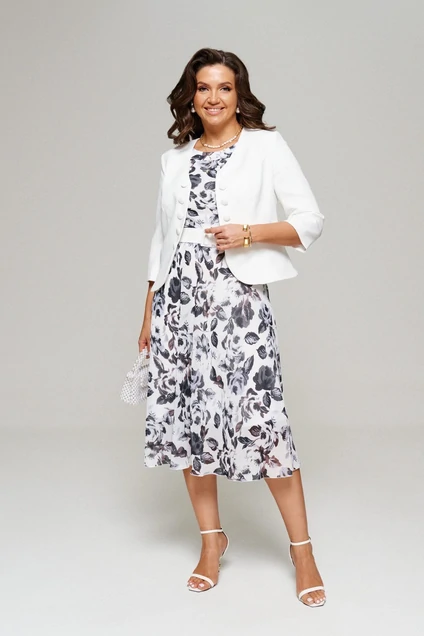 Костюм с платьем 6157 молочный + цветы Beautiful&Free