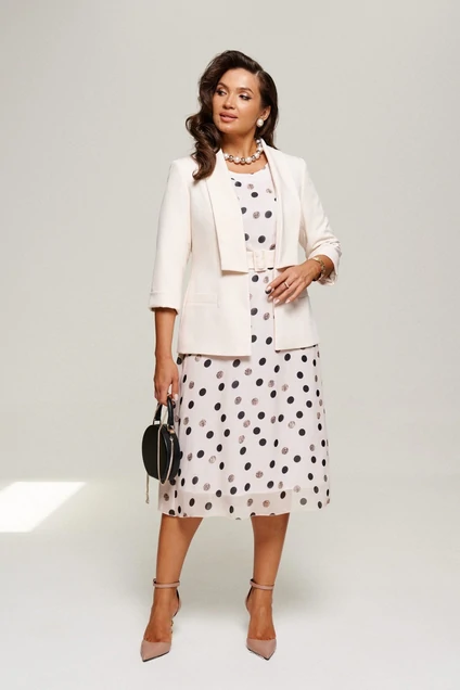 *Костюм с платьем 6198 молочный + горох Beautiful&Free