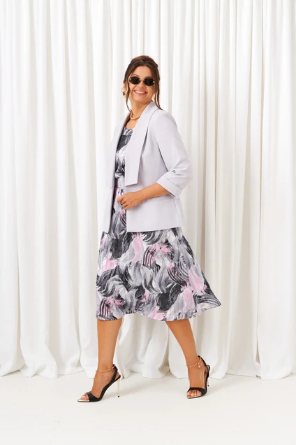 Костюм с платьем 6408 Beautiful&Free сочетает в себе изящество и практичность. Коллекция бренда представляет собой нарядный женский комплект из жакета и платья, которые подчеркивают женственность и стиль. Жакет из костюмно-смесового полотна обладает нежной, бархатистой текстурой. Его приталенный силуэт дополняют декоративные элементы, такие как имитация карманов. Платье из легкого шифона отлично подходит для теплого сезона, создавая свободный силуэт с помощью двух нагрудных вытачек. Комплект выполнен в изысканном оттенке и украшен поясом с пряжкой, что добавляет образу завершенности. Сочетание жакета и платья делает костюм идеальным для особых случаев.Длина жакета (по среднему шву спинки) – 64,5см. Длина рукава (жакет) – 47см. Длина платья (по среднему шву спинки) – 109см