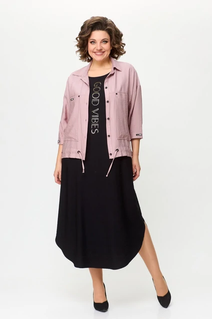 Платье свободного силуэта расширенное к низу, низ с закругленными разрезами.