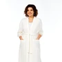 Комплект женский состоит из платья полуприлегающего силуэта и свободной блузы без застежки. Платье с V- образной горловиной и разрезами по боковым швам. Перед с нагрудными вытачками. Блуза выполнена из полупрозрачной ткани. Рукав втачной, одношовный, со спущенной линией плеча, по низу рукав собран на резинку. В области талии обработана кулиса со шнуром. Длина платья по спинке 126 см, длина блузы по спинке 61 см, длина рукава 35 см