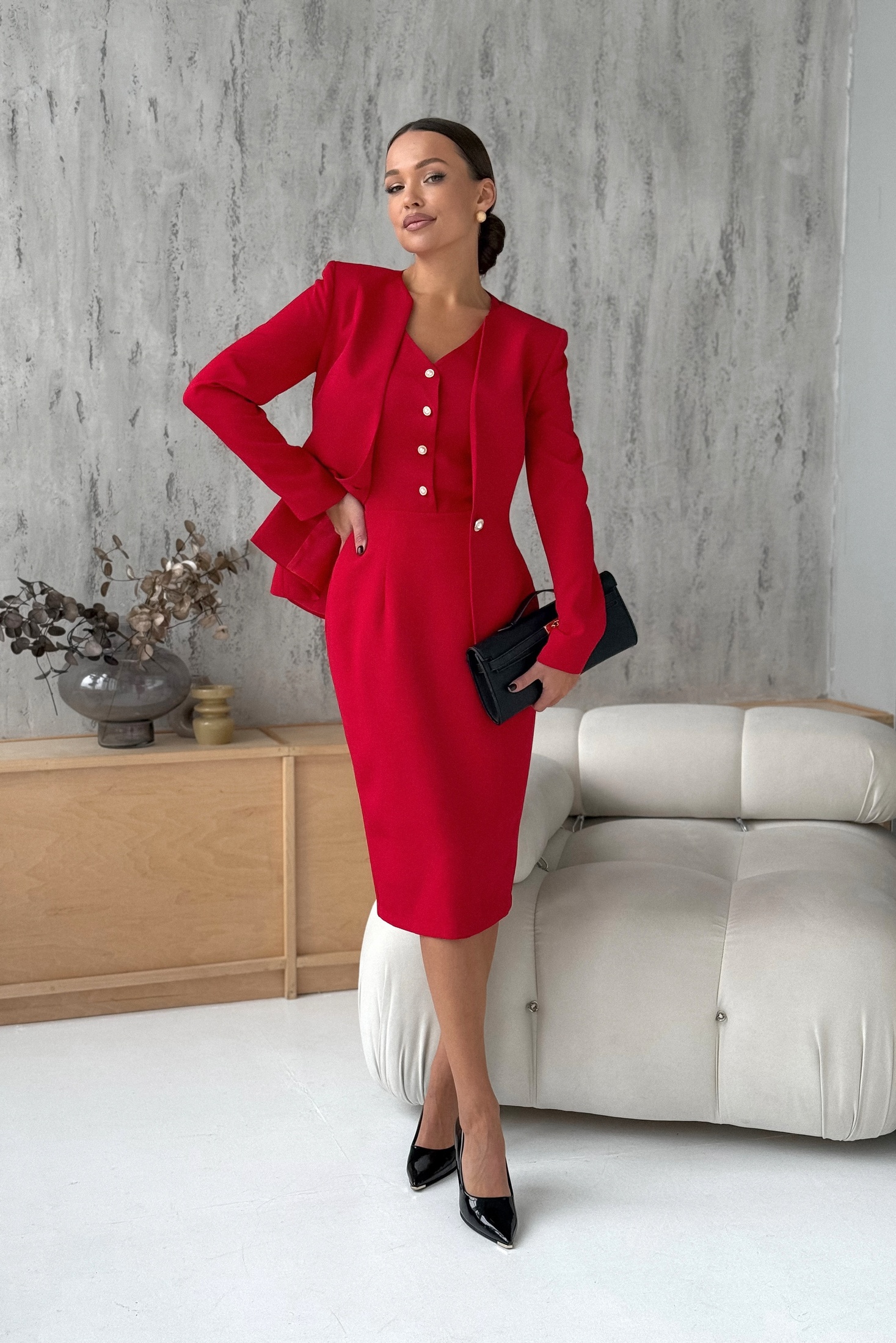 Костюм женский двух-предметный, состоящий из платья и жакета.