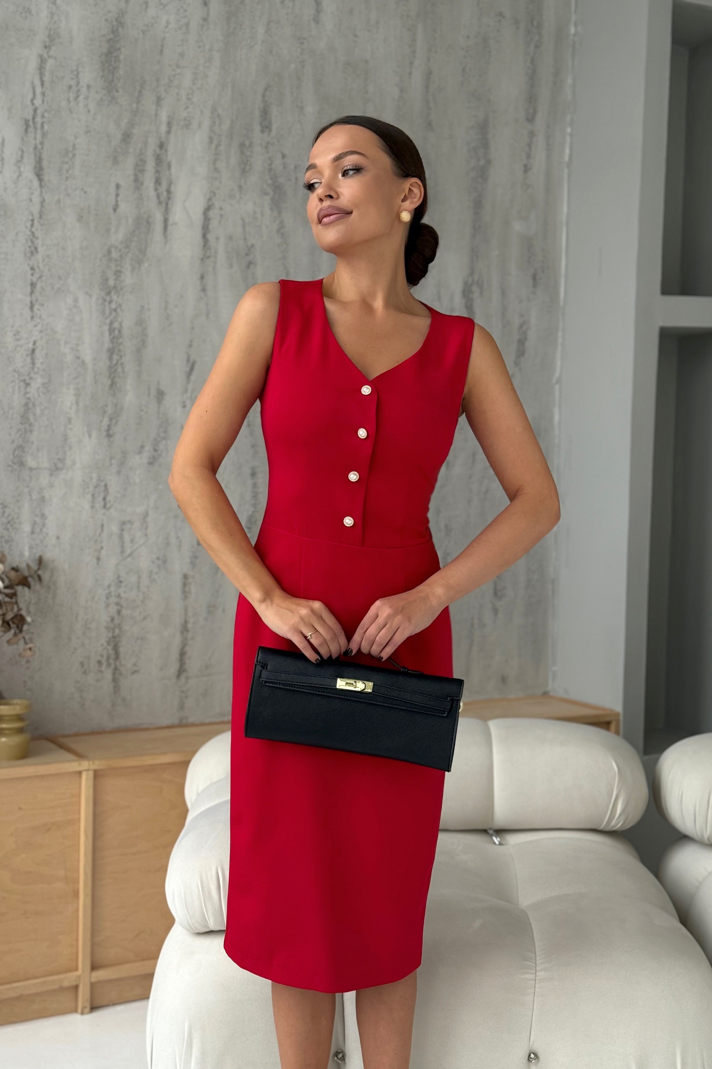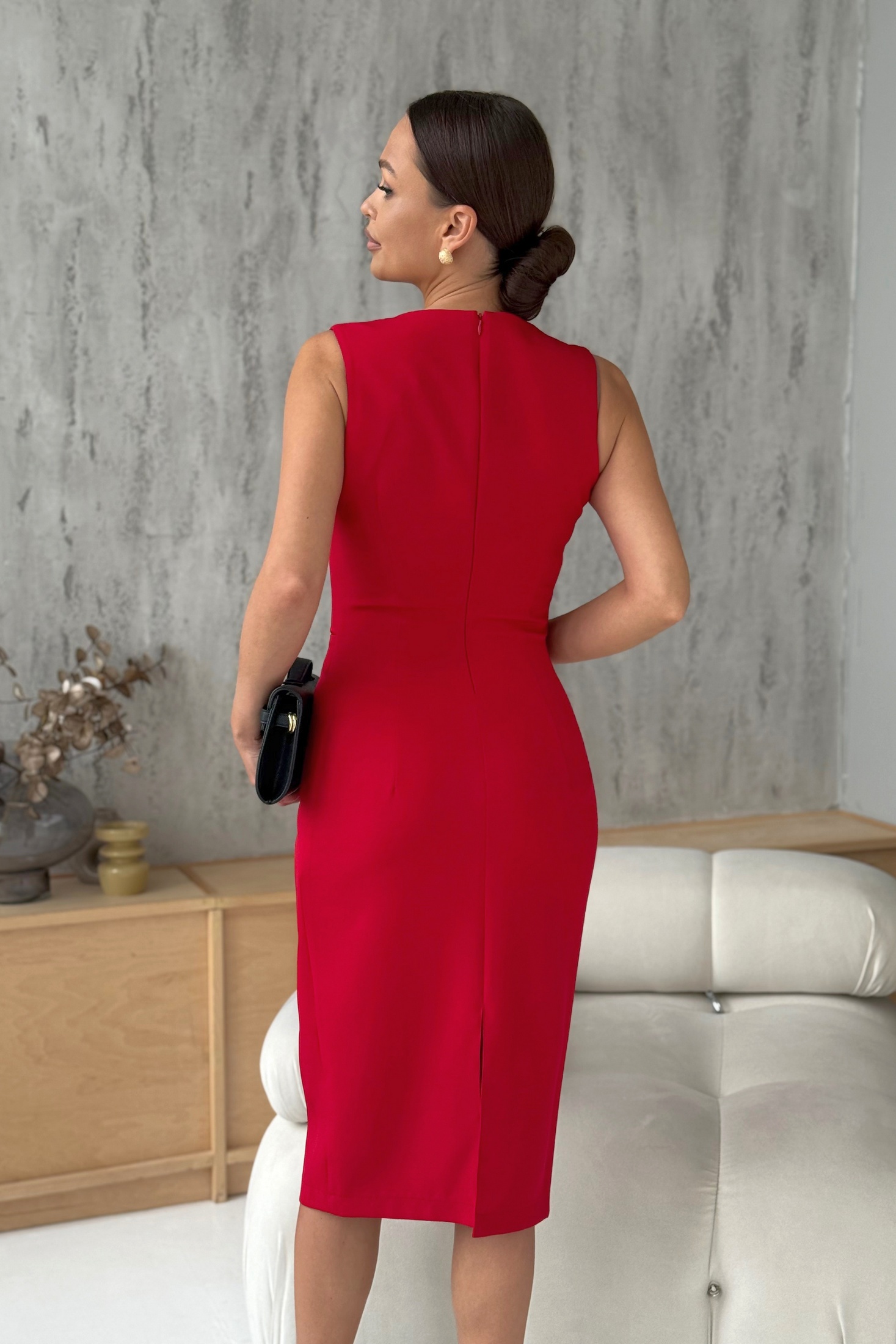 Платье полуприлегающего силуэта, длинной чуть ниже колена.