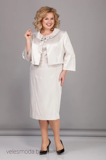 Стильный женский комплект, состоит из жакета и платья. Жакет свободного силуэта, выполнен из атласа.
