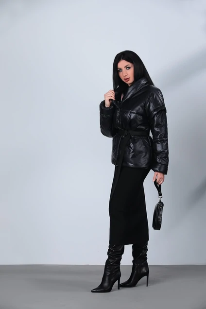 Комплект женский, состоящий из куртки и платья. Куртка прямого силуэта с застежкой на навесные петли и пуговицы. Перед с карманами в горизонтальных швах. Воротник-стойка на углубленной горловине. Линия плеча спущена. Рукав крепится на петли и пуговицы, что позволяет использовать куртку как жилет, отстегнув рукава. Куртка утеплена синтепоном плотностью 200 гр. В комплекте пояс из ременной тесьмы. Платье прямого силуэта, ткань трикотаж. Рукав втачной. Горловина с трикотажным довязом. Куртка: ПЭ 100% , наполнитель синтепон.