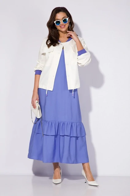 Костюм с платьем 151к белый + лавандовый Liliana-style