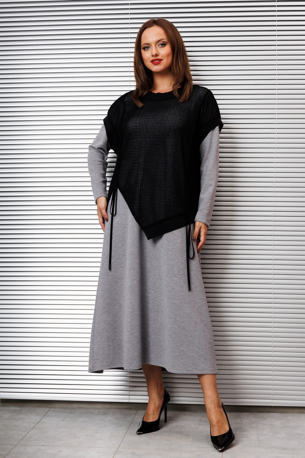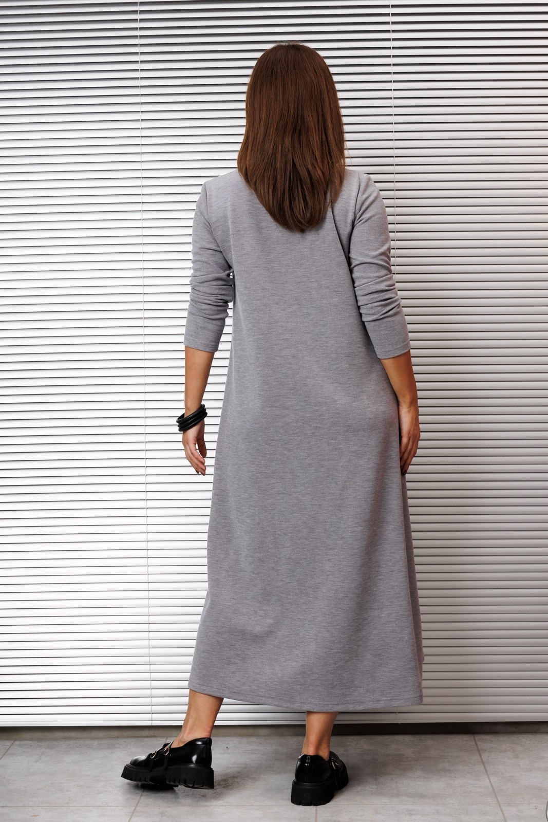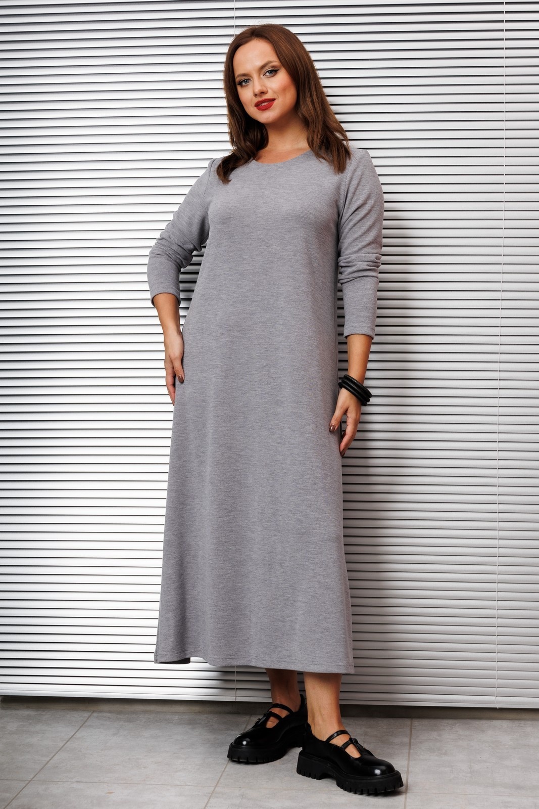 Платье свободного силуэта, вырез горловины округлый. Рукав втачной, длинный. Изделие без застежки.