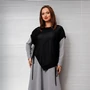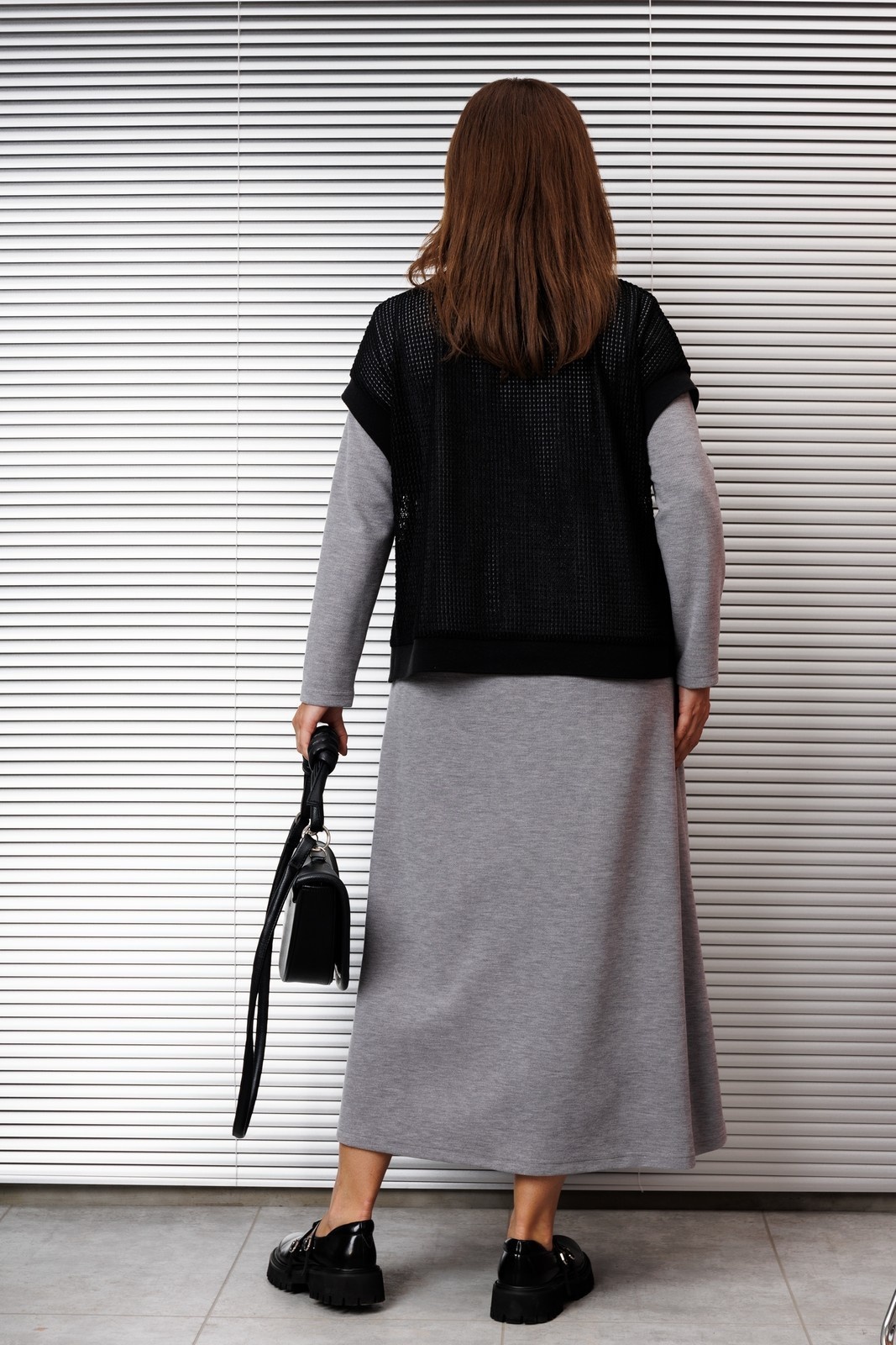 Жилет свободного силуэта из ажурной сетки с асимметричным низом и декоративными завязками по бокам.