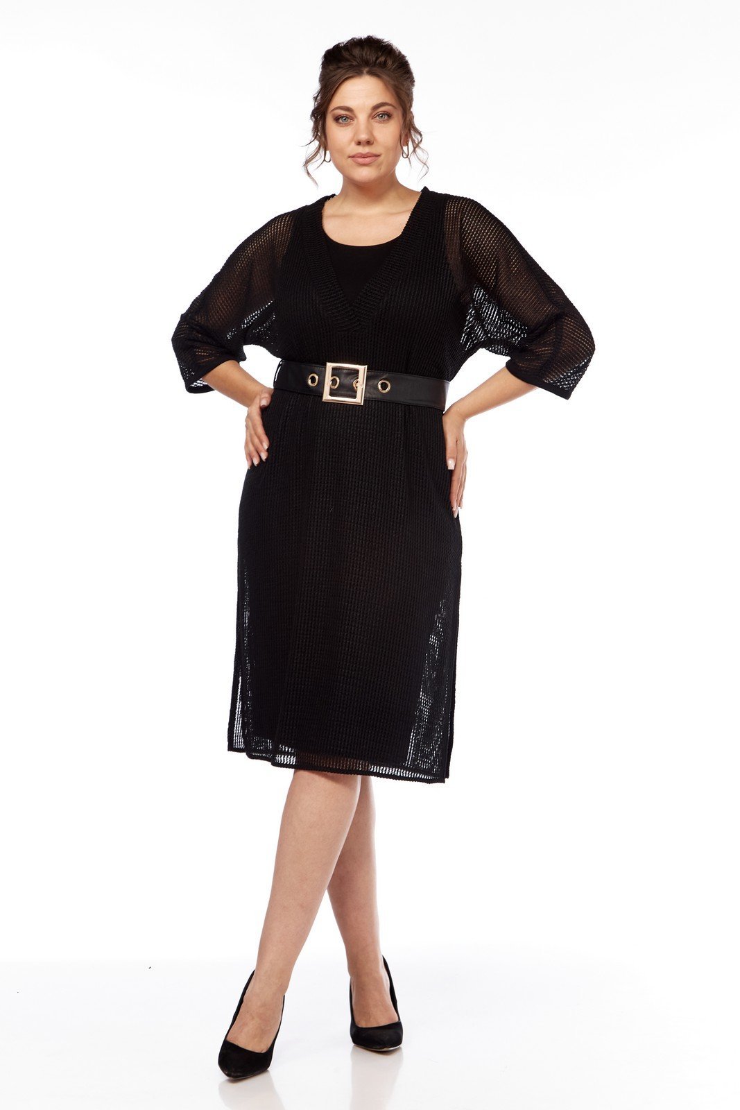 Комплект, состоит из двух изделий: верхней туники из полотна с сетчатой структурой, нижнего платья из мягкого очень приятного трикотажа. Туника свободного покроя, горловина v-образная, в боковых швах высокие разрезы. Спинка прямая со средним швом.