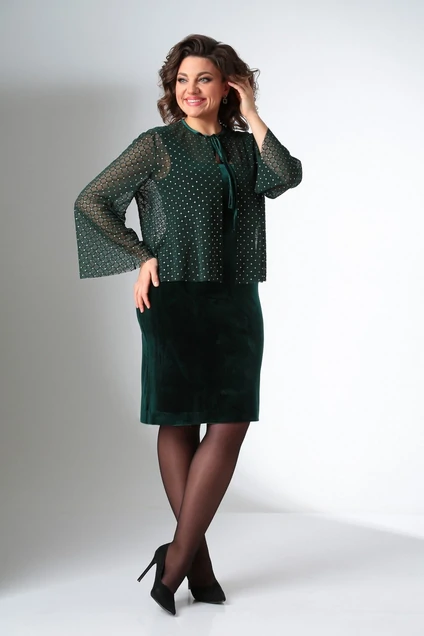 Костюм с платьем 1439 изумруд LADIS LINE