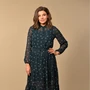 Комплект 2-х предметный, состоит из платья и туники. Платье А - силуэта, с круглым вырезом горловины, обработанного воротником стойкой. Лиф переда с нагрудными вытачками, центральной супатной застежкой. По низу платья воланы со сборкой. Рукава втачные, одношовные, с резинкой по низу. Туника прямого силуэта, с круглым вырезом горловины, нагрудными вытачками по переду. Платье комплектуется съемным поясом. Размеры 48-52: длина туники 81 см, длина платья 115 см, длина рукава платья 57 см. Размеры 54-58: длина туники 83 см, длина платья 117 см, длина рукава платья 58 см.