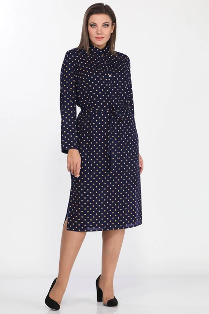 Комплект 2-ух предметный, состоит из туники и платья. Платье прямого силуэта, с круглым вырезом горловины, обработанного воротником рубашечного типа. Перед с нагрудными вытачками, клапанами, застежкой - планкой, в боковых швах - разреза. Туника прямого силуэта, с нагрудными вытачками по переду. Рукава втачные, одношовные, длинные. Размеры 48-52: длина платья 112 см, длина рукава 59 см. Размеры 54-58: длина платья 115 см, длина рукава 61 см Туника – полиэстер 100%