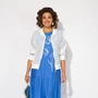 Роскошный женский комплект: удлиненное платье и хлопковый жакет по типу бомбера, станет настоящим украшением вашего весенне-летнего гардероба. Идеально подойдет как для летних вечеринок, так и для особых случаев, таких как выпускной, день рождения или свадьба. Платье выполнено из вискозно-штапельной ткани. Модель свободного силуэта, отрезная чуть ниже талии на 2 яруса в сборку. Платье с округлым вырезом горловины и спущенным цельнокроеным рукавом. В боковых швах предусмотрены карманы. Платье с эффектной печатью накатом по полочке. В комплекте идет облегченный жакет, по типу бомбера с застежкой на металлическую молнию, выполнен из хлопковой ткани с вышивкой ришелье. Рукав на спущенном плечевом поясе. Вырез горловины, низ изделия и рукавов оформлен мягкой притачной планкой из кашкорсе. Спинка без особенностей.