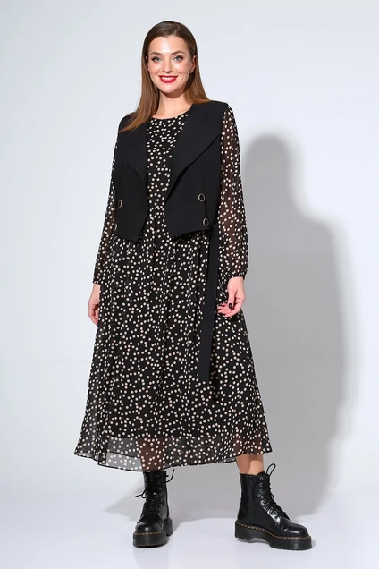 Костюм с платьем 813 черный + горох Liona