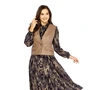 Комплект женский, состоящий из жакета и платья. Жакет приталенного силуэта. Округлый вырез горловины и борта. По полочке-карманы с листочкой и клапанами. Рукав втачной, с разрезами по низу. По переду-застёжка на петли-пуговицы. Жакет без подкладки (летний вариант). Платье приталенного силуэта, со свободной юбкой, на подкладке. Округлый вырез горловины. Рукав втачной, короткий. Застежка на молнию в боковом шве. В комплекте-пояс в цвет жакета. Длина по спинке жакета-53см, длина рукава-30см. Длина по спинке платья-113см, длина рукава-19см