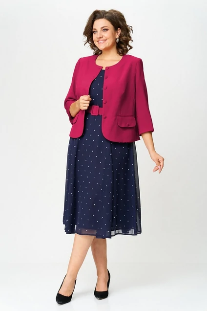 Костюм с платьем 1260 малиновый + синий Milora