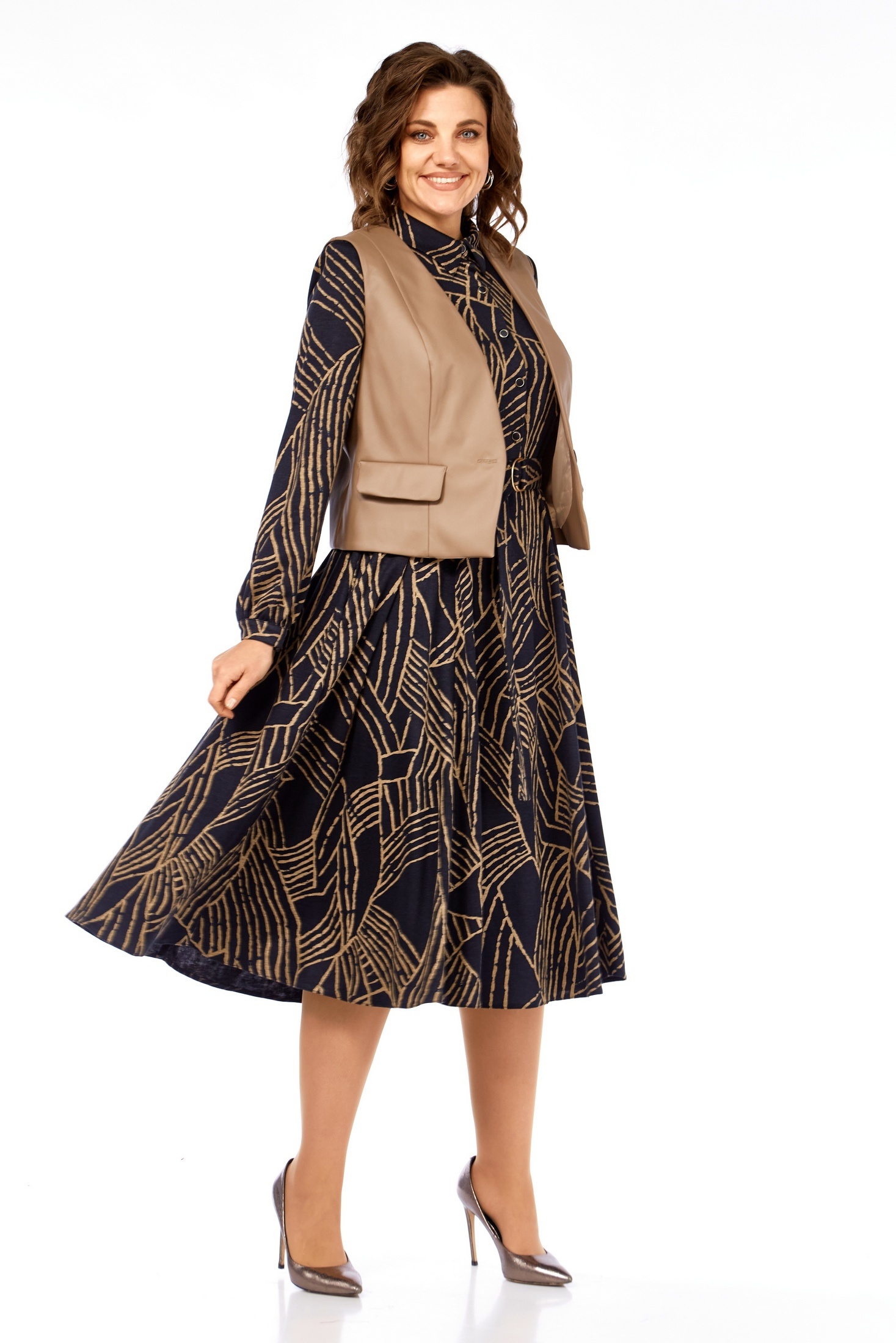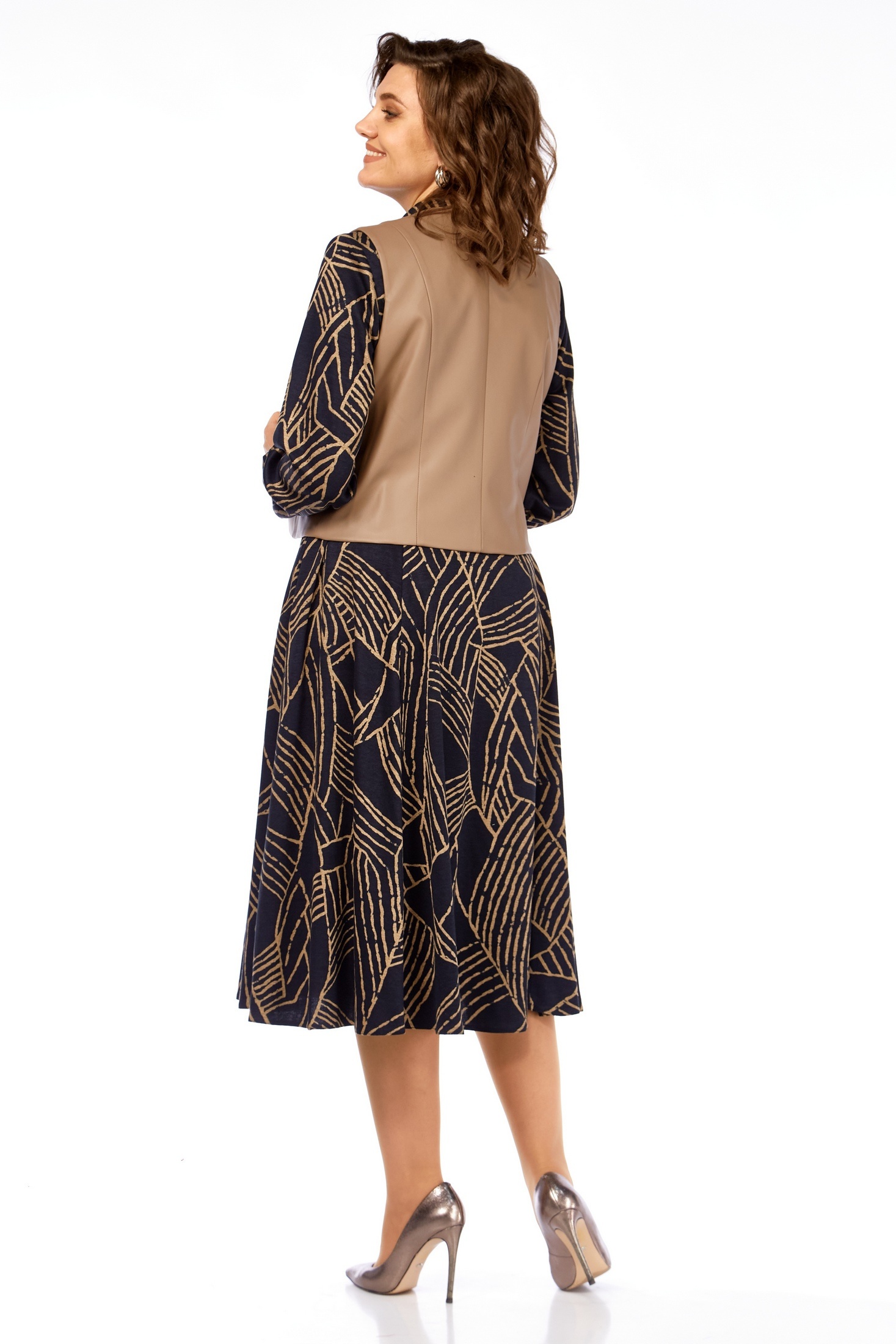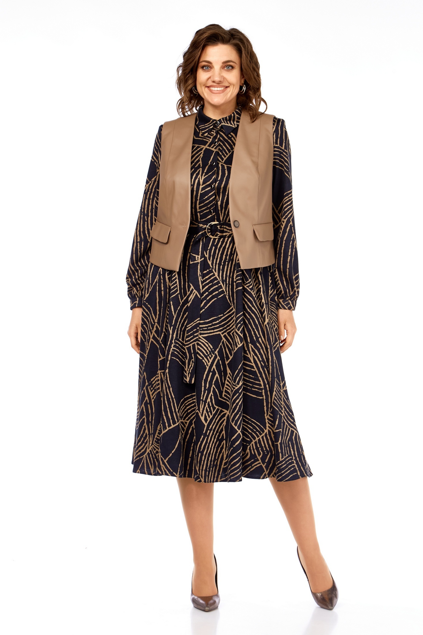 Костюм с платьем 1380-1 черный + капучино листья Milora