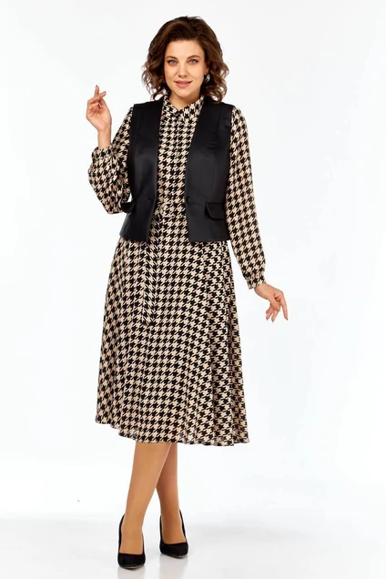 Костюм с платьем 1380 гусь-лапка + черный Milora
