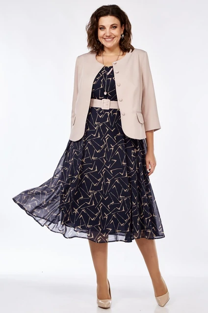 Костюм с платьем 979-1 синее в штрихи Milora