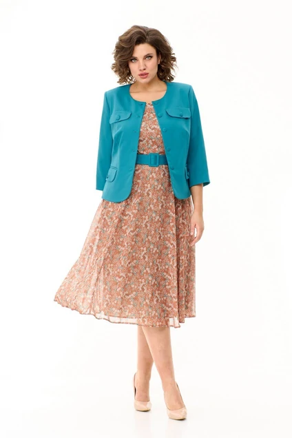 Костюм с платьем 979-1 коричневый + бирюза Milora