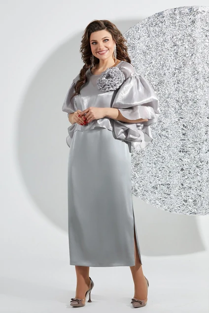 Эффектный комплект, состоит из платья полу-прилегающего силуэта и блузы из органзы. Платье выполнено из атласа, на трикотажной подкладке, горловина V-образной формы, также на полочке выполнены нагрудные вытачки. Спинка со средним швом и вытачками, в среднем шве потайная молния, пройма обтачена подкладкой. Блуза свободного покроя, горловина округлой формы, окантована. Пройма обаботана присборенными, объемными воланами из органзы, также полочка декорирована съемным цветком из органзы. Эффектная блуза дополнит ваш образ и сделает вас королевой любого мероприятия! Длина платья 126см, Длина блузки 44см в 52р. Блузка. Ширина груди- 60см, длина рукава- 42см от горловины. Платье. Ширина груди- 53см, Ширина талии -50см, Ширина бедер- 58см