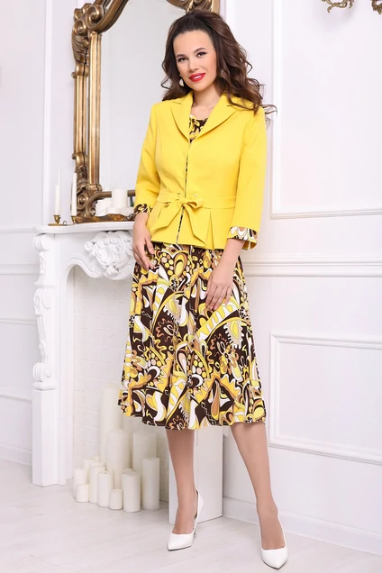 Костюм с платьем 2513-1 желтый+коричневый Мода-Юрс