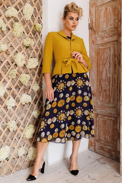 Костьм с платьем 2513-3 горчица + монеты Мода-Юрс