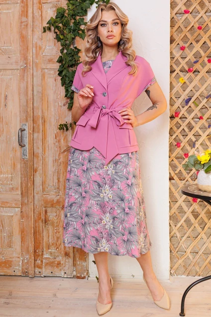 Костюм с платьем 2742-2 розовый + серый Мода-Юрс
